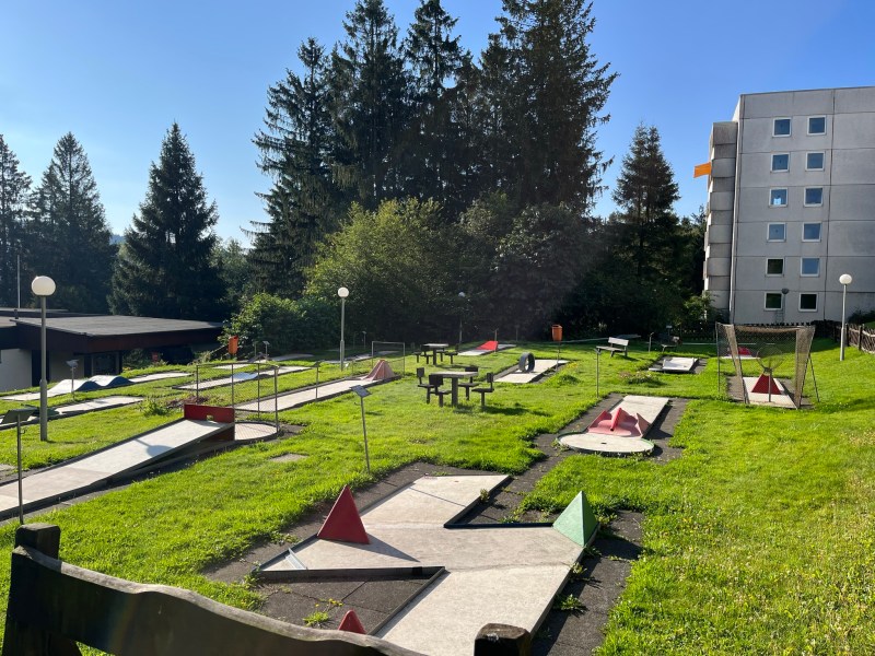 Schläger und Bälle können Sie an der Reception des Ferienparks leihen (kostenpflichtig). Diese Minigolfanlage ist die klassische Variante, die nie langweilig wird.
